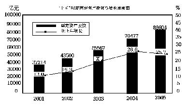 118.B[解析]2005年的全社会固定资产投资约为88604亿元,2001年的全社会固定资产投资约为37214亿元,2005年的全社会固定资产投资比2001年增长了(88604-37214)÷37214×100%≈138.1%。