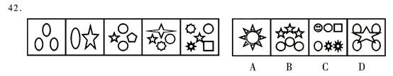 42.C【解析】此题的解题点是图形元素的个数,题中的图形元素从左到右一次增加一个。