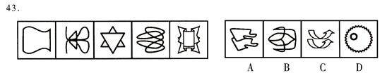 43.D【解析】此题的解题点是图形的形状。前五个图形都是轴对称图形。选项中只有D是轴对称图形。