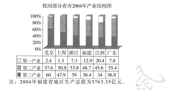 116.B【解析】观察图中可知2004年福建省第一、二、三产业结构为12.9:48.7:38.4,所以答案为B项。