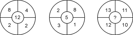 (二)图形中的数字都包含一定的规律,请你总结前两个图形数字的规律,从四个选项中选出最恰当的一项。