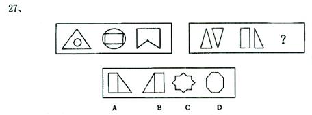 一、图形推理:共5题,每道题包含两套图形和可供选择的4个图形。这两套图形具有某种相似性,也存在某种差异。要求你从四个选项中选择最适合取代问号的一个。正确的答案应不仅使两套图形表现出最大的相似性,而且使第二套图形也表现出自己的特征。