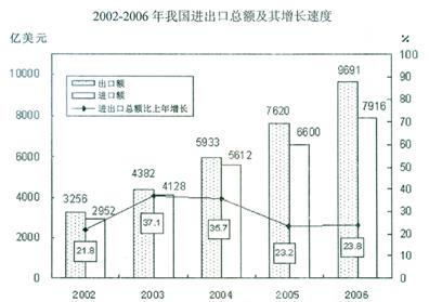 117.【答案】A。解析:由图表可知2006年出口额为9691亿美元,2005年出口额为7620亿