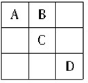 15.将1~9 个数字分别填入右边的九宫阵,使阵中每一行,每一列的三个数字之和均为15,其中的数字1 可以填入阵中的哪个位置?( )