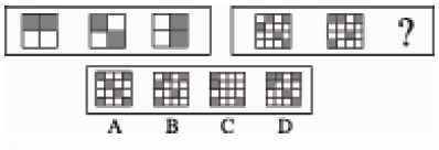 76.C【解析】本题的规律为,每组前两幅图形相叠加,相同的部分变为白色,不同的部分变为黑色。依此规律,四个选项中只有C 项符合规律。故选C。