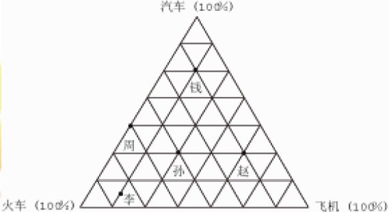 134.C【解析】由图形可知,赵先生长途出行乘坐火车与飞机的比例为1∶4。故选C。