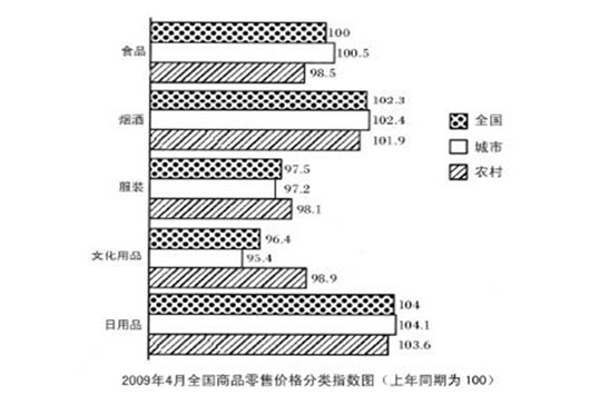 136.2009年4月我国城乡零售价格同比上涨最多的商品是()