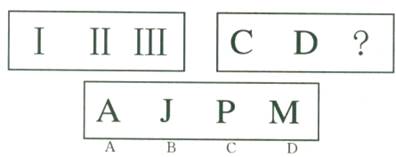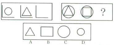 46.C【解析】第一个图形为半框加圆,第二个图形为半框加三角,第三个图形为半框,所以问号处应当填入的当为前两幅图形相同的部分,即一个大圆。所以C项为正确答案。