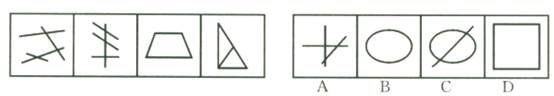 47.A【解析】这道题考查的是笔画数,第一个图形为一画,第二个图形为两画,第三个图形为三画,问号处也应符合这一规律,为三画,所以A项为正确答案。