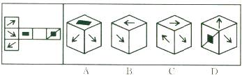 55.D【解析】A项,如果左面与右面成立,则顶面的图案当为黑方加斜线。B项,如果左面与右面成立,则顶面图案当为黑长方或黑方加斜线。C项,左右两面不可能同时成立。所以D项为正确答案。