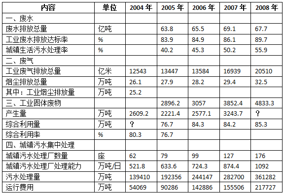 D. 2004至2008年,城镇生活污水处理率增长速度高于工业废水排放达标率的……