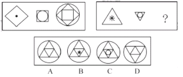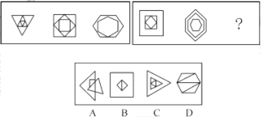 56 正确答案为D。因为只有D能使两套图形具有相似性,仅仅元素不同,一个是半圆,一个是半个正方形,但两组图形中元素的排列规律完全相同。