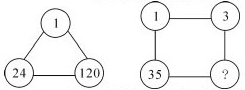 100.A【解析】观察第一个三角形图可知每相邻两个数相加为完全平方数,则3+?与35+?均为完全平方数,将四个选项分别代入,可知只有46+3=49,46+35=81,符合规律。所以正确答案为A项。