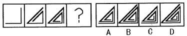 51. C 此题为数量题。在第一个图的里层与外层分别加一条线段,得到第二个图形;第二个图形的里层与外层分别加一条线段得到第三个图形,因此,第三个图形里层与外层分别加一条线段所得的图形C就是答案,因此,答案为C。