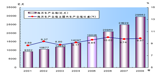 121.C 2009年全国海洋生产总值约为31000亿元,2008年约为29000,相差2000,比值约为2/29=0.0689,C项最接近。故选C。