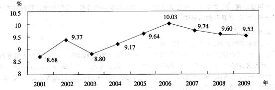 2001—2009年全国海洋生产总值占全国内生产总值比重