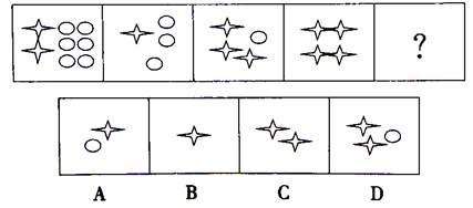 6.C【解析】本题四角星和圆的个数不构成规律,一般考虑数量换算。观察第一个和第二个图形,可发现第一个图形四角星和圆的个数分别为第二个图形中的二倍,由此确定换算后为等比数列。1○=5 ,换算后 的个数依次为32、16、8、4、(2),由此选择C。