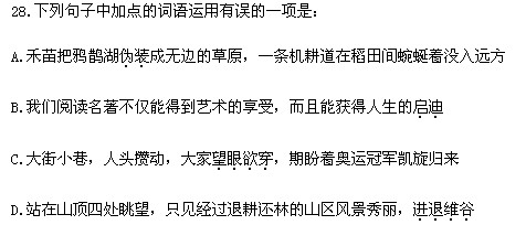 9、 下列句子中加点的词语运用有误的一项是:(  )。