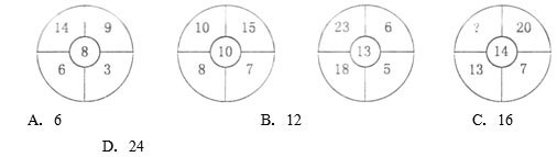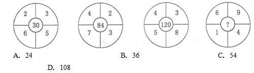 43.D【解析】两两做商得到 1.5,所以答案选择 48÷1.5=32。
