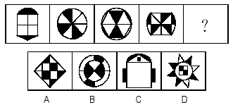76.C【解析】数量类图形推理,阴影面的数量分别为 2、3、4、5,于是应该选有 6 个阴影面的图形,选