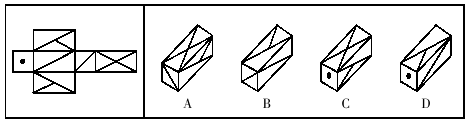 78.A【解析】空间折叠类,看特征面的相邻和相对关系,十字交叉的特征面短边相邻的特征面为一条对角线的正方形,长边相邻的面为有左上角到右上角的角线,并且右上角有半条对角线画出,所以选 A。