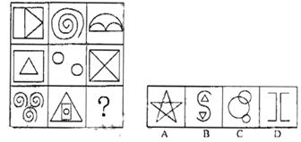 82.C【解析】样式类,图形的叠加,图形竖列看,每列的第一个图形和第二个图形相加等于第三个图形,所以选 C。
