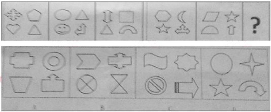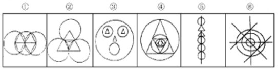 解析:图形①②⑥中都含有3个圆,图形③④⑤中都含有4个圆。