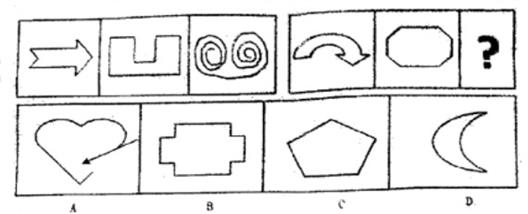 解析:每组前两个图形都含有1个封闭区域,第三个图形开放图形,由此选择A。