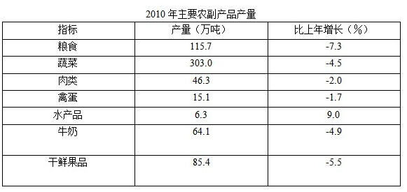 A选项,粮食产量115.7,蔬菜产量303.0,粮食产量超过蔬菜产量的1/3。A选项错误。