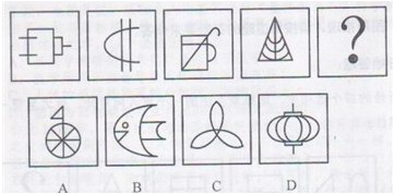 74.【解析】B。题干图形的封闭空间的数量分别为3、4、5、6个,因此问号处应填入一个含有7个封闭空间的图形,只有B项符合。