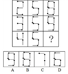 。重构类。用对立面不可同时出现排除B选项;运用华图上课教授的相对面之间的移动法,将中心有一个小黑点的图移过去,三图转为相邻,C选项有小黑点的两相接的面错误,D选项三个图的时针方向错误。