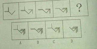 76.B【多元解析】考查旋转。通过观察可知,图形每一次是顺时针旋转135度,因而选B。
