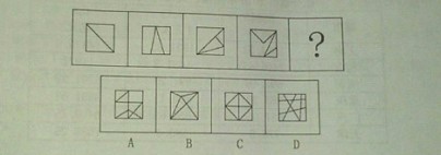 84.B【多元解析】考查线条数目和一笔画。所给图形每一次的内线分别为1,2,3,4,故所求图形中的内部线条数目应为5,排除A和C,此外,所给的四个图形均为一笔画图形,B和D中只有B是一笔画图形,故选B。