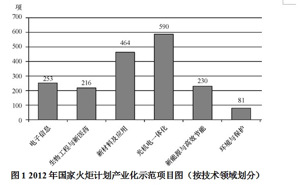 根据图1和文字材料“2012年国家火炬计划项目总立项数2108项,其中产业化示范项目1834项”可知,产业化示范项目中,立项数最高的技术领域占产业化示范项目总立项数的比重比立项数最低的领域高
