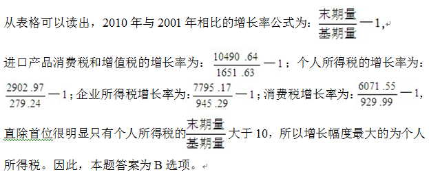 从表格可以读出,2004年个人所得税为1042.24亿元。同比增长幅度(增长率)=
