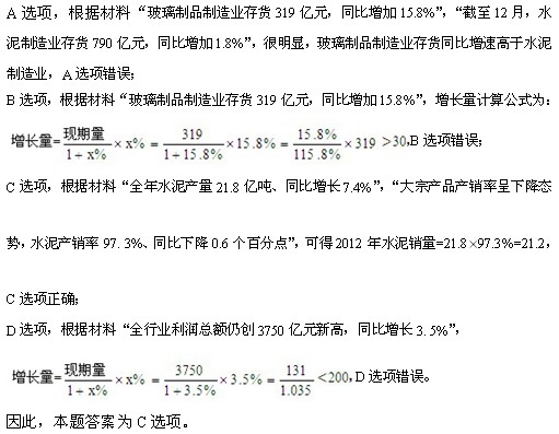 C选项,根据文字材料“2012年火炬计划重点支持项目445项”可知,重点支持项目总数的5%为22.25项,少于22.25项的有软件产业基地、科技兴贸、大学科技园和其他4个领域,C选项错误;