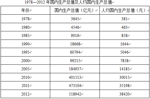 解析 由材料第一段“1978—2012年,我国国内生产总值平均增长9.8%,人均国内生产总值平均增长8.7%”可知,我国国内生产总值增长情况快于人均国内生产总值年均增长,故正确答案为B。