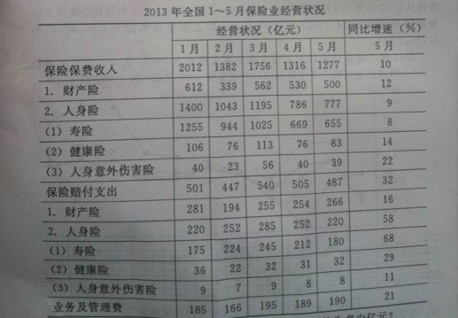【解析】A选项考核读数比较,健康险5月高于4月,错误;B选项考核平均数比较,寿险、健康险均低,错误;C选项考核读数比较,寿险支出2月高于1月,错误;D选项考核比重计算,正确。