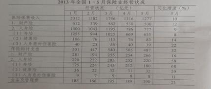 解析:由表格最后一行可求2013年1-5月,保险业平均每月业务及管理费用为:(185+166+195+189+190)÷5=185亿元,选B。