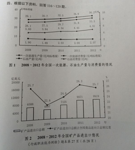 120.【答案】D。平均每年一次能源生产量超过30亿吨标准煤