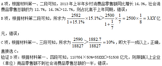 【解析】D。根据图形可知,2012年粮食产量为58957万吨,同比增长3.2%,则所求为58957×(1+3.2%)≈59000+60000×3%=60800万吨=6.08亿吨,最接近的是D项。