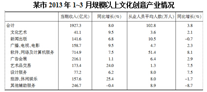 【解析】A。只有一个艺术品交易。总体收入增长率为8%,从业人员同比增长率为3.8%,通过表格只有一个艺术品交易。满足条件。故选A。