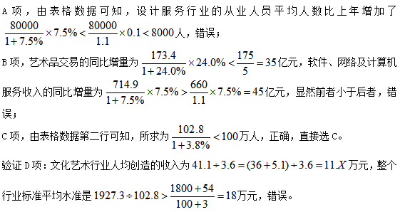 D.文化艺术行业人均创造的收入高于整个产业平均水准
