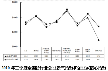 全国企业景气调查结果显示,2010年二季度,企业家信心指数为133.0,比上一季度回落2.5点;企业景气指数为135.9,比一季度提高3.0点。