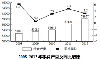 C.从2008~2012年,粮食产量年均增长2000多万吨