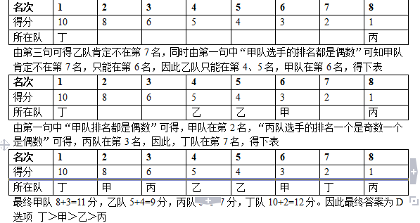 本题要找年龄最大的,甲是乙的父亲得知 甲>乙,所以乙不能是年龄最大,排除B;丙是甲的弟弟,说明 甲>丙,排除丙,而且甲、丙属于同辈份的。丁是丙的母亲,说明丁是甲丙的长辈,年龄肯定>甲,所以选D。
