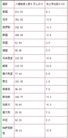 130.C【解析】A项,容易发现韩国是表中入境旅游人数最大的,故A项可以推出;