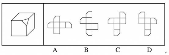 通过观察可知,1面与6面的缺口并未相邻,故无法构成左图的正六面体,故正确答案为C。