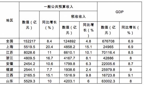 111.B【解析】简单观察表格可得,上海、江苏、浙江、安徽、福建、江西和山东这七个省份中,2015年一般公共预算收入与GDP的比值大于10%的省(市)有:上海、江苏、安徽、江西和山东这五个。因此,本题选项B选项。