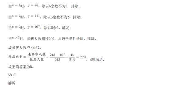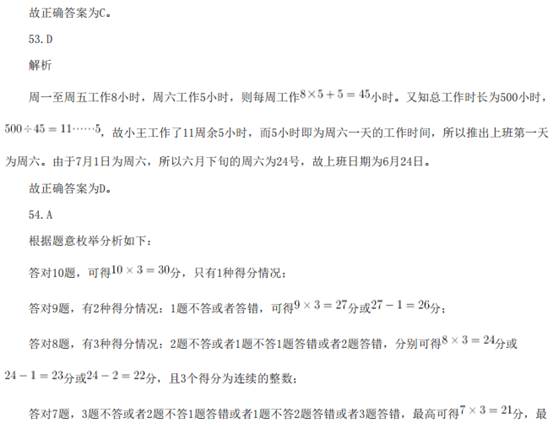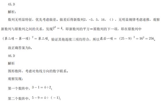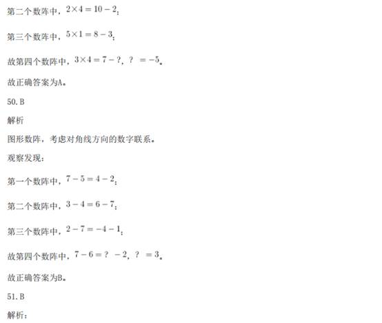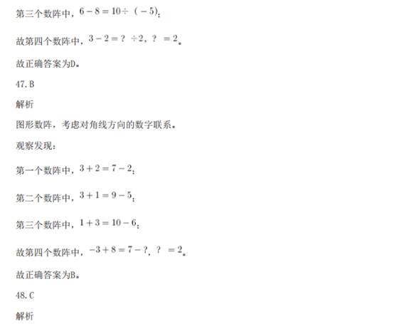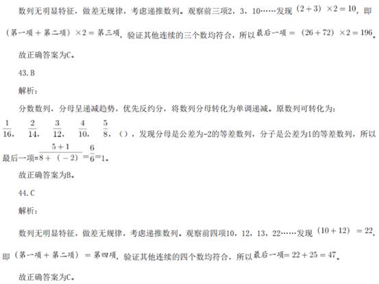 41.A 解析: 数列无明显特征,优先考虑做差。做差后得到新数列:3,3,6,18,72,( )。新数列存在明显倍 数关系,所以做商得:1,2,3,4,( ),下一个商值应为5,即新数列的最后一项应该为72×5=360, 故原数列最后一项为106+360=466。 故正确答案为A。